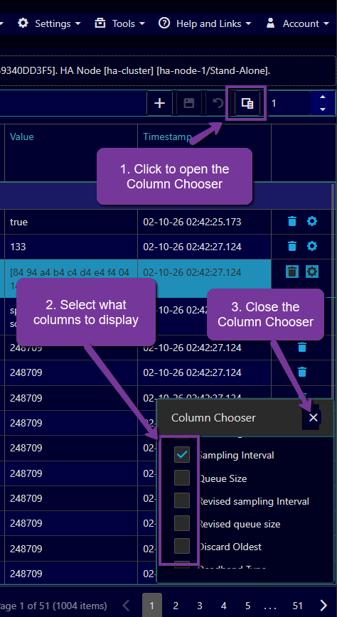 Column Choosericon to select what columns to display.