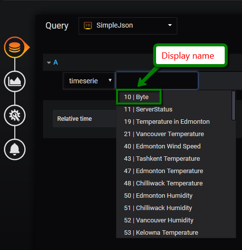 Display Nameis displayed on Grafana when variable is selected as a metric for SimpleJson data source: