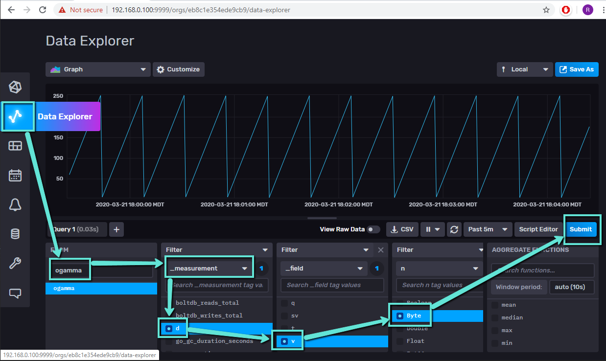 Database Namein the Time-Series Databases dialog window (default name isogammalogger). Table name can be modified by JSON optiontableName, default name isvalues. The column where data values are written depends on value data type.