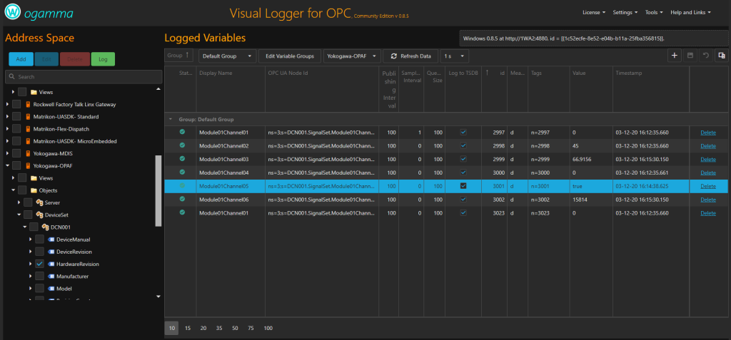“ogamma Visual Logger for OPC helps us obtain industrial data and present it in Grafana. It has 2 features: you can historize time-series data from OPC UA Servers in InfluxDB, or present the data without historizing.